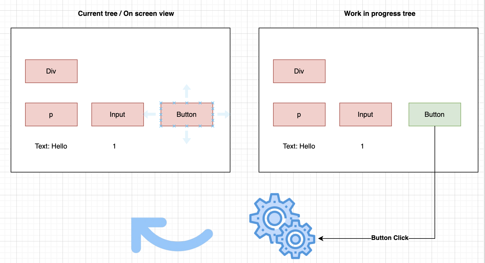 - Current Tree → Represents what is currently rendered on the screen